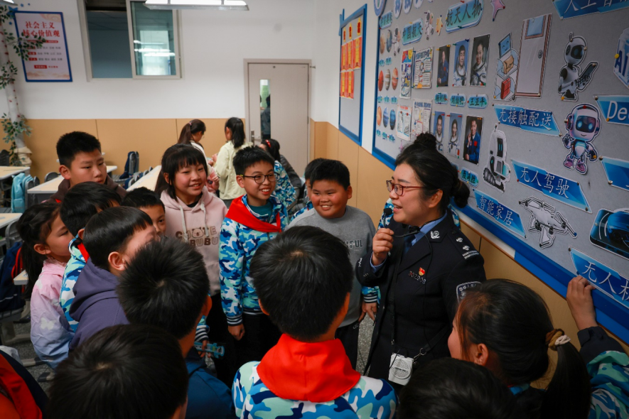 鲤鱼池小学示范课现场。重庆两江公安供图