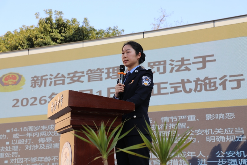 在讲解校园欺凌环节,吴冬琴不仅分析了欺凌行为的心理诱因,更重点解读了新修订《中华人民共和国治安管理处罚法》中对结伙斗殴、追逐、拦截他人等行为的处罚升级规定。“给同学起侮辱性绰号、在网络上传播谣言,这些行为都可能触碰法律底线。”现场学生认真聆听,深受触动。