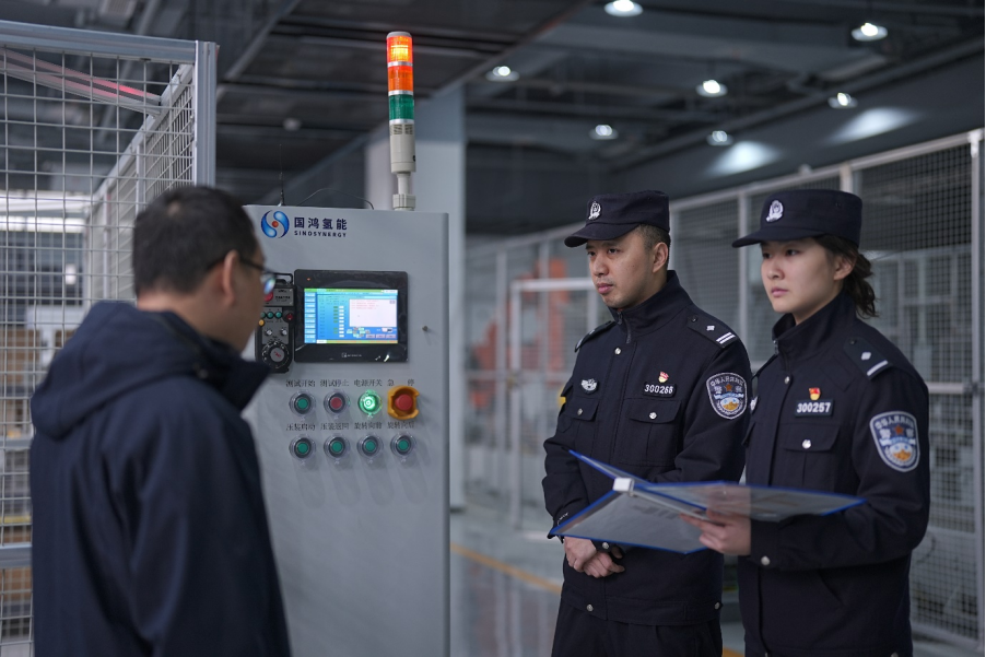 助企联络官深入氢能源企业调研了解生产经营情况。重庆市公安局九龙坡区分局供图