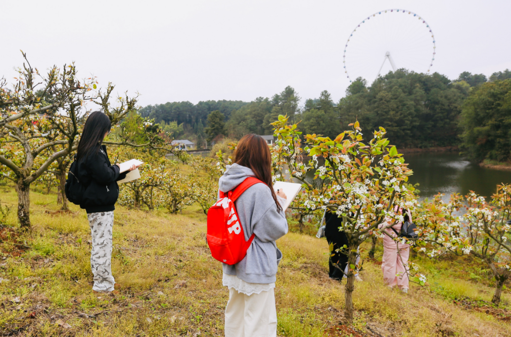 随后,研学队伍走进梨园水库,开展自然写生活动。学子们以画笔为媒,描绘枝头盛放的梨花、水面翩飞的苍鹭,将湖光山色、生态野趣定格于画纸之上。在老师指导下,大家观察植物生长、辨识鸟类形态,把自然课堂搬到山水间,在实践中增长知识、陶冶情操,实现“游中学、学中悟”。