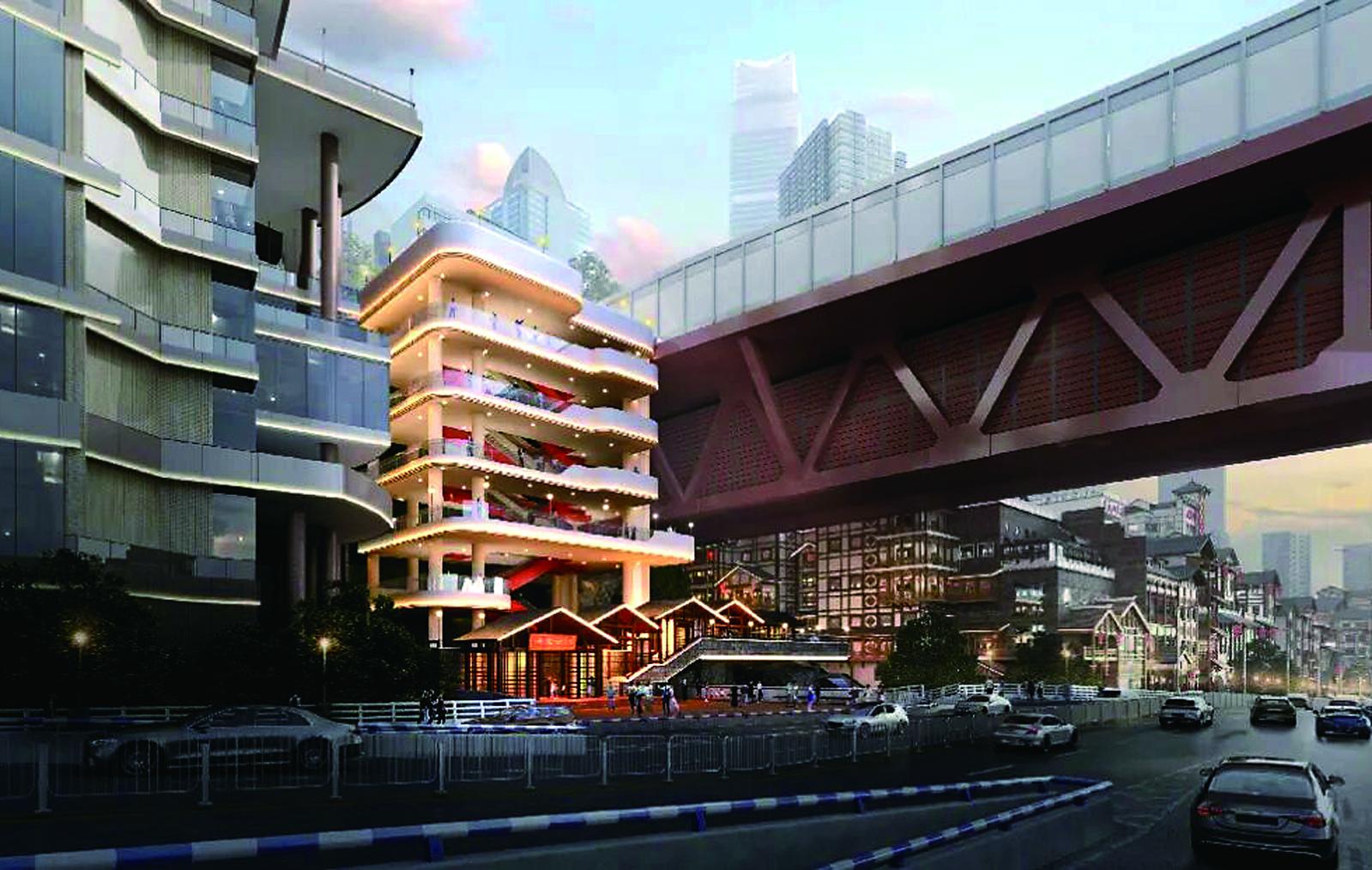 洪崖洞旁“长”出40米立体扶梯效果图
