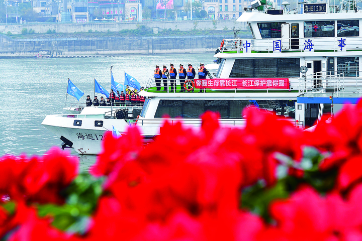 长江流域重点水域“十年禁渔”全面启动活动(重庆分会场)在重庆江北嘴执法船舶码头举行(2020年12月31日摄)。新华社记者唐奕摄