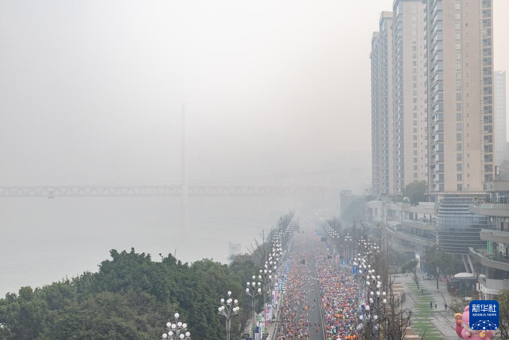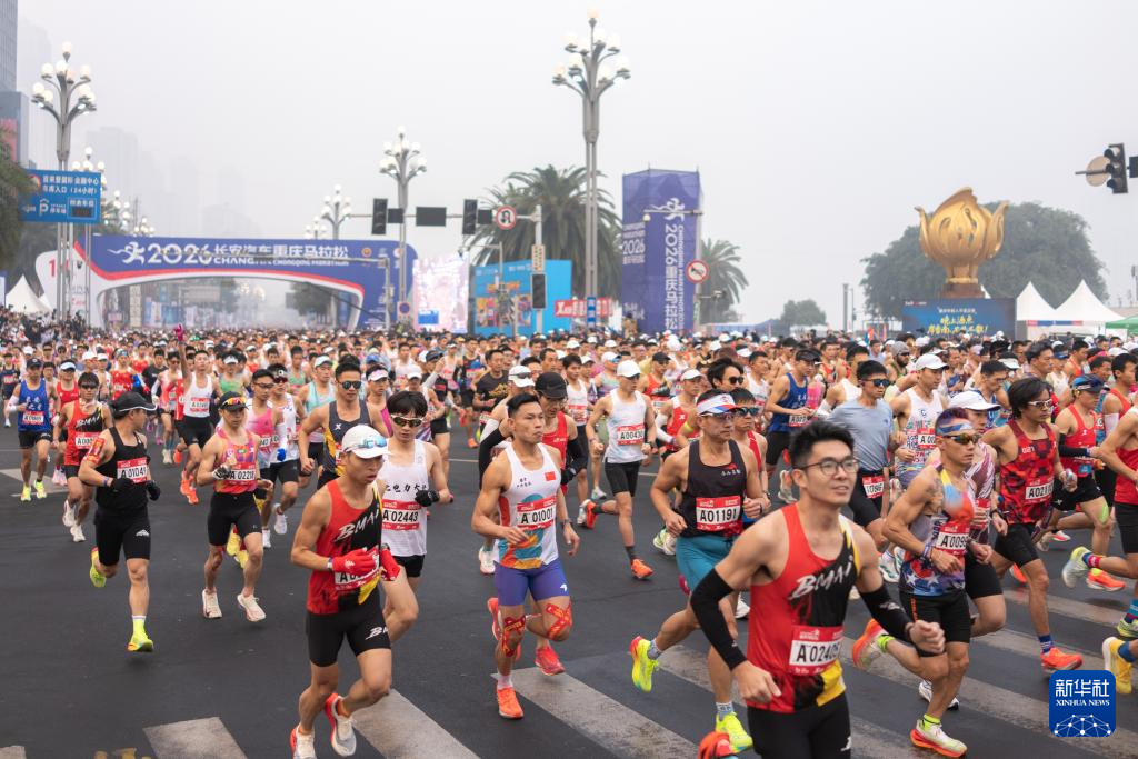 当日,2026重庆马拉松赛在重庆市南岸区南滨路烟雨公园鸣枪开跑,共有来自26个国家和地区的约2.5万名选手参赛。