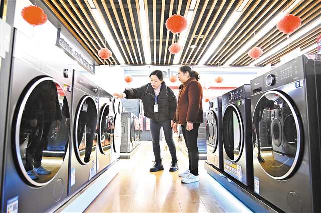 2月7日,垫江县一商场,市民正在咨询和选购洗衣机,以旧换新惠民政策与春节促销活动共同点燃了消费市场。(本报资料图片)特约摄影 孙凯芳/视觉重庆