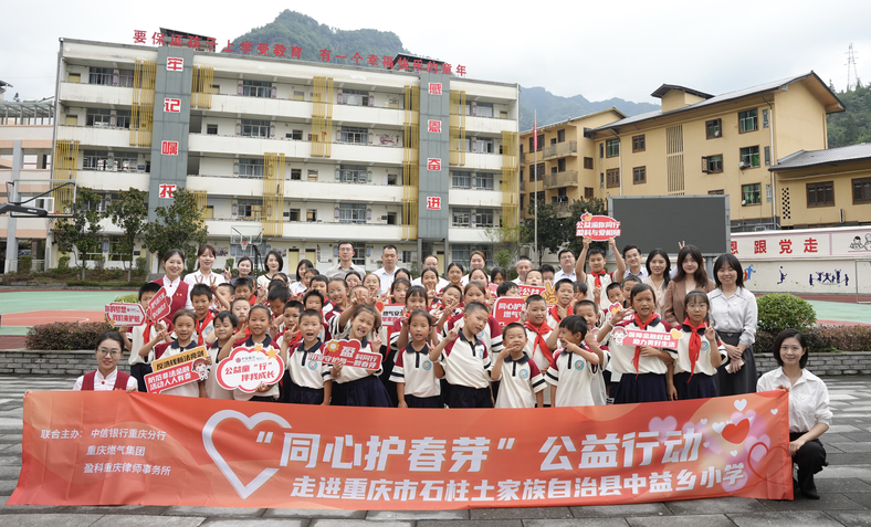 2025年9月12日,重庆燃气集团“法润渝安”普法活动携手中信银行、北京盈科(重庆)律师事务所,走进重庆市石柱土家族自治县中益乡小学校,正式启动“同心护春芽”公益行动,三家单位通过物资捐赠、知识科普、家庭帮扶等多元化举措,为当地儿童织密织牢成长“安全网”,让关爱与温暖浸润孩子们的心田。