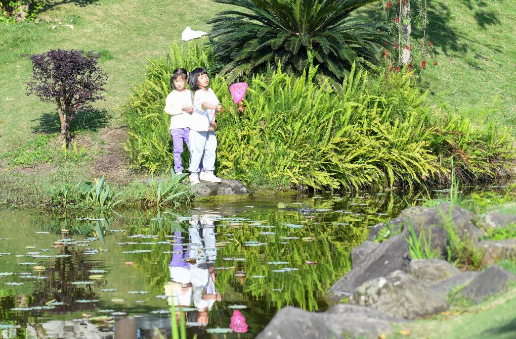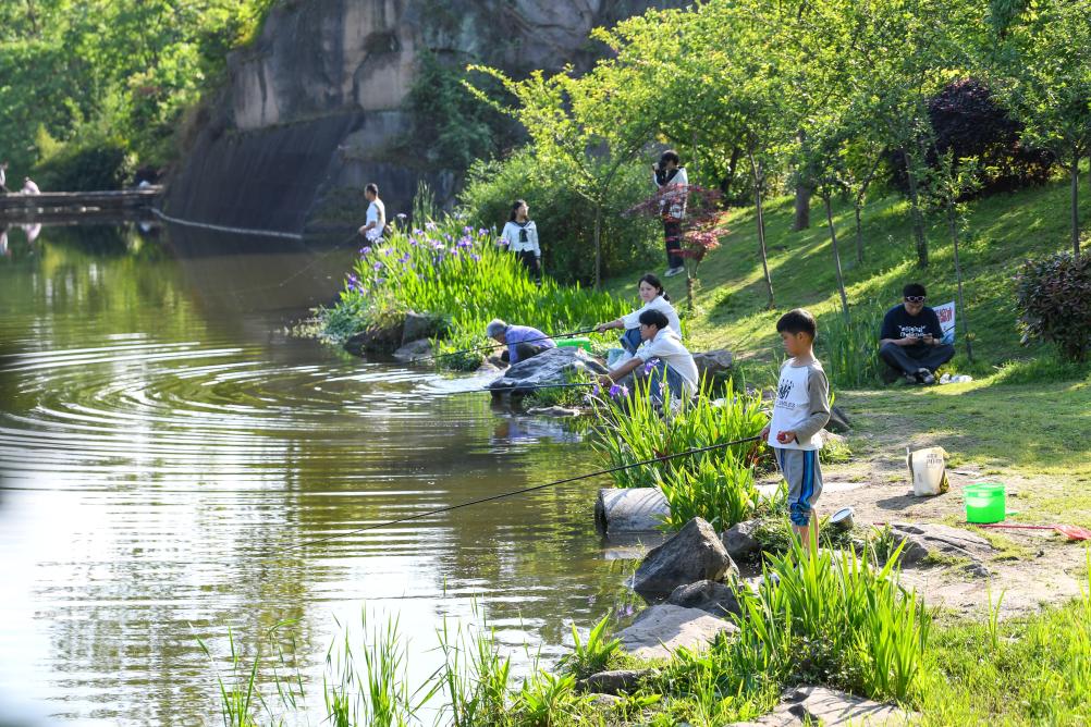 春日,重庆市荣昌区玉带河公园内绿意盎然、碧波相伴,众多市民与游客前来休闲观光,或漫步亲水步道,或驻足赏景拍照,呈现出一派和谐生动的春日景象。