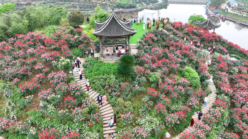 这是4月15日在重庆市永川区三教镇拍摄的玫瑰庄园(无人机照片)