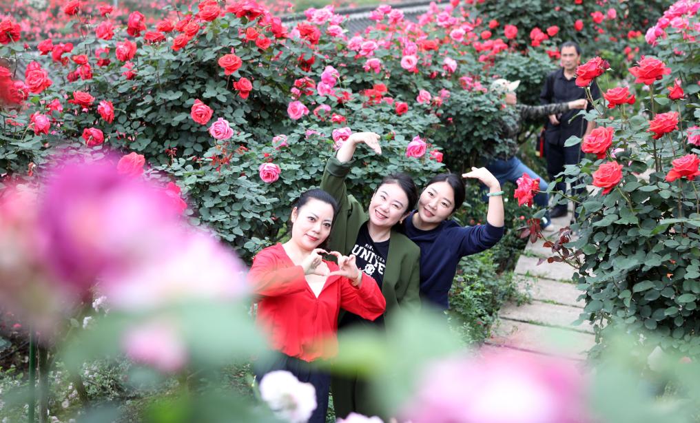 4月15日,“渝见玫瑰·醉美永川”2026重庆市第一届山地玫瑰嘉年华在重庆市永川区三教镇玫瑰庄园启幕,游客走进山地花海,感受春日气息。