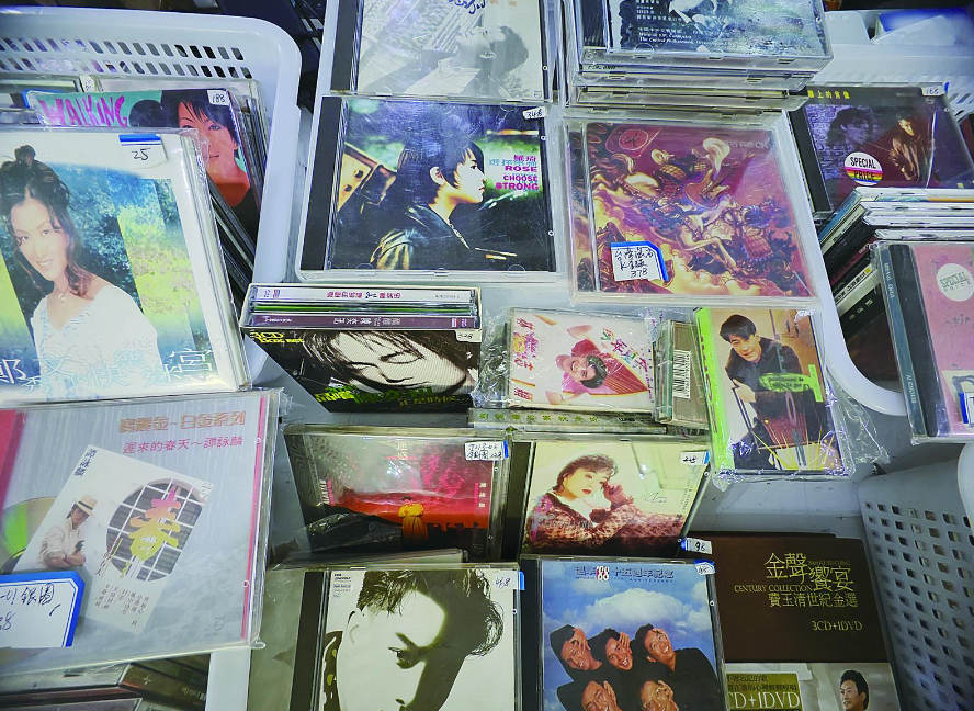 3楼转角的摊位上,55岁的刘大叔正小心翼翼擦拭着一摞泛黄CD盒。接手摊位几个月来,他把几百张上世纪八九十年代的唱片摆得整整齐齐,每一张都擦拭得一尘不染。“这些都是正版,你看这激光防伪标。”他拿起一张张学友《吻别》专辑,语气自豪,“当年一张CD要几十元,相当于普通人几天工资,现在呀,买的不只是唱片,更是青春与情怀啰。”