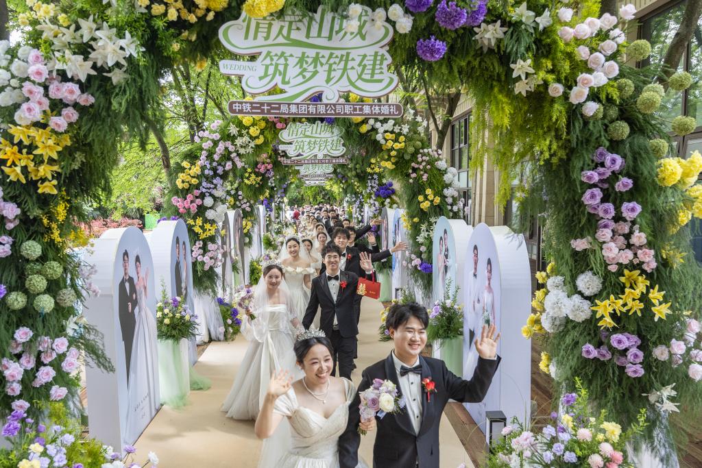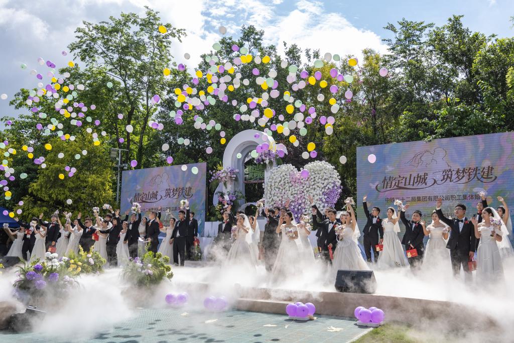 4月22日,以“情定山城 筑梦铁建”为主题的集体婚礼在重庆北碚缙云山下举行,来自重庆、河北、福建、黑龙江等地的22对中铁二十二局新人,在企业成立22周年之际,脱下工装换上礼服,在亲朋和同事们的见证下,分享婚礼的幸福甜蜜。